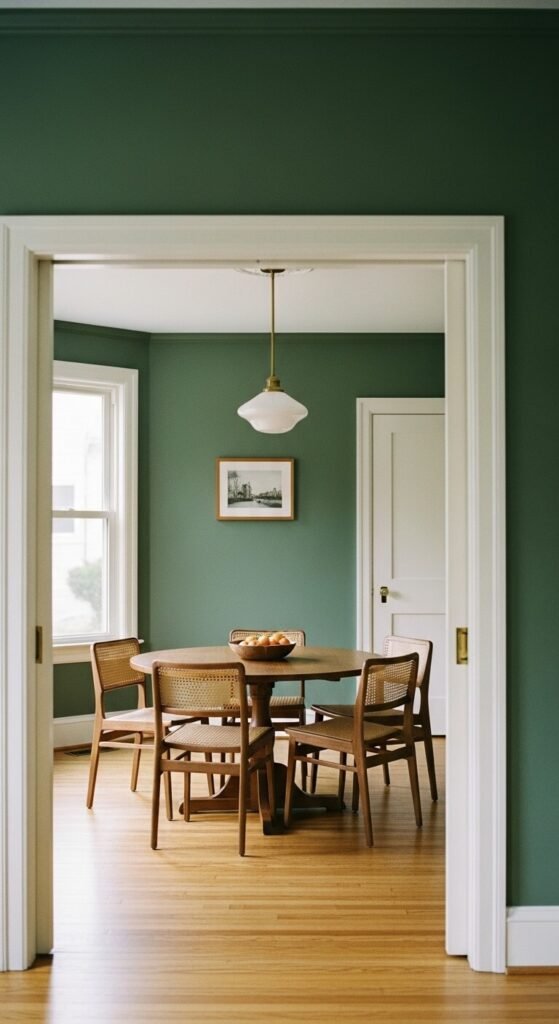 You do not need crown molding or original architecture to add character. A painted accent wall, DIY board-and-batten paneling, or a wallpapered wall behind the table creates a focal point that anchors the room. Board-and-batten is one of the most affordable DIY projects — thin wood strips, nail gun, and paint. It transforms a plain dining room wall into something that looks custom. Pick one wall and commit. The contrast will make the whole room feel more designed.