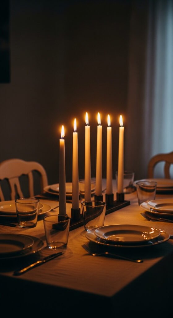 Nothing creates atmosphere the way candlelight does. Keep a stock of taper candles, pillar candles, and tea lights and use them freely — not just for dinner parties. Candles in thrifted brass holders or simple glass hurricanes look beautiful. Battery-powered candles work surprisingly well for everyday use and eliminate worry about open flames. Lighting three or four candles on a Tuesday night shifts the entire energy of a meal from ordinary to something worth savoring.