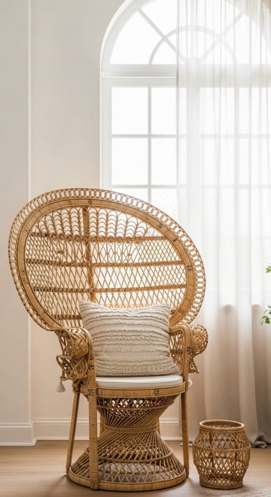 Hunt for vintage peacock chairs, wicker trunks, or rattan side tables at secondhand shops. A single statement piece transforms a corner without overwhelming small rooms.