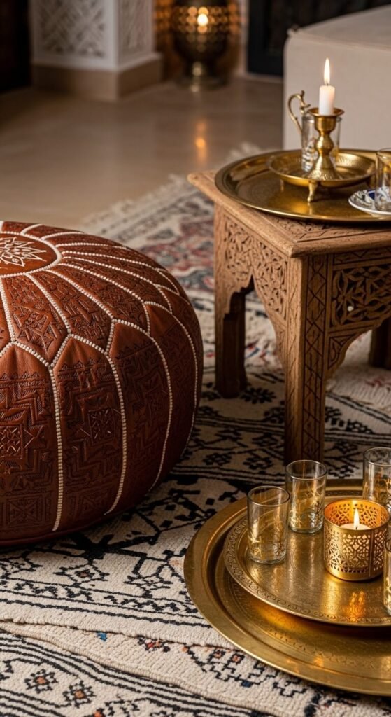Authentic leather Moroccan poufs run $80-$200, but fabric versions from import stores cost $40-$80. Stuff them yourself with old blankets, clothes, or pillow filling to save money.