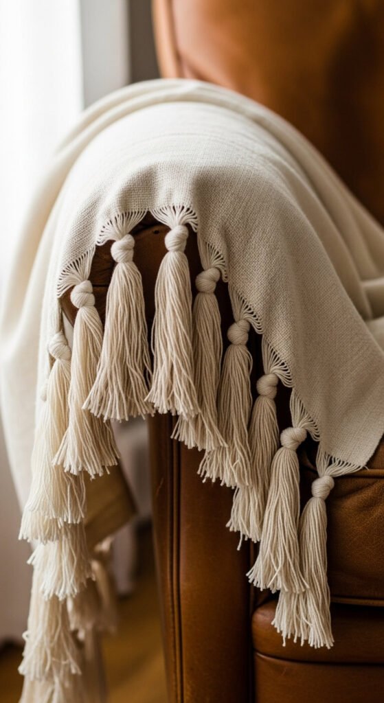Choose natural fiber fringe in cotton or jute over synthetic versions. The slightly irregular handmade look beats machine-perfect every time. Fringe also hides hemming mistakes on DIY projects like cushion covers.