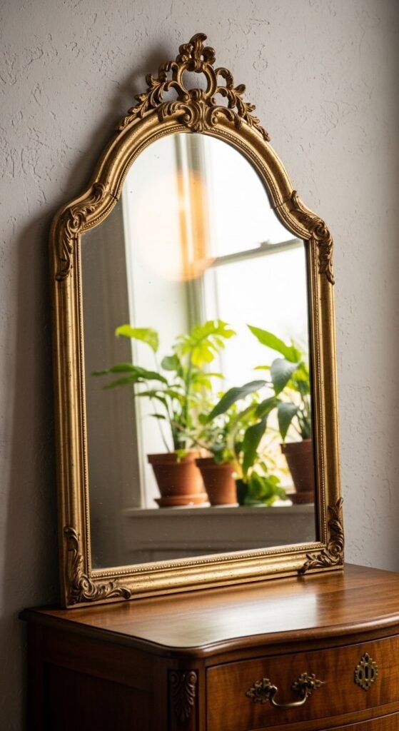 Shop estate sales and antique malls for gilded, carved, or rattan-framed mirrors. Prices range wildly from $25 bargain finds to $200+ for large statement pieces.