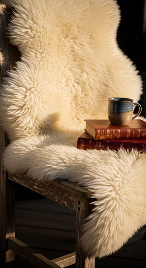 Real sheepskin throws cost $60-$150, but quality faux versions run $25-$50. Drape them over chairs, benches, or the foot of your bed for instant coziness.