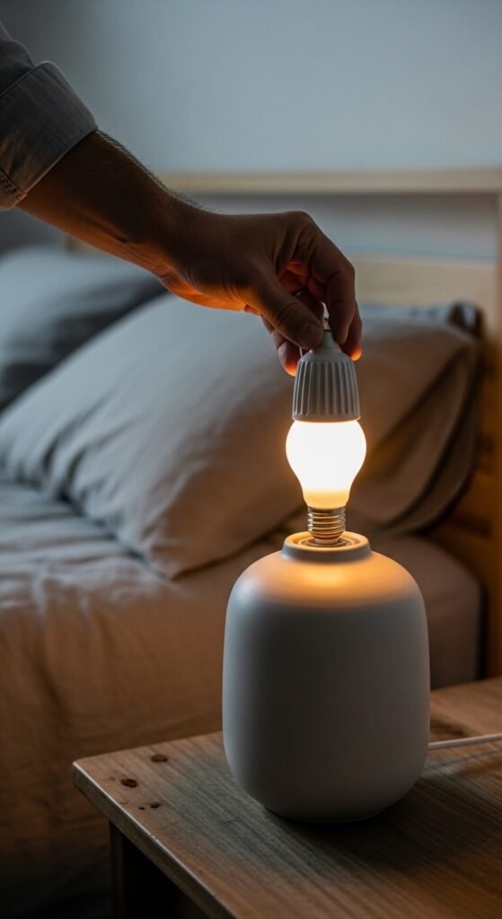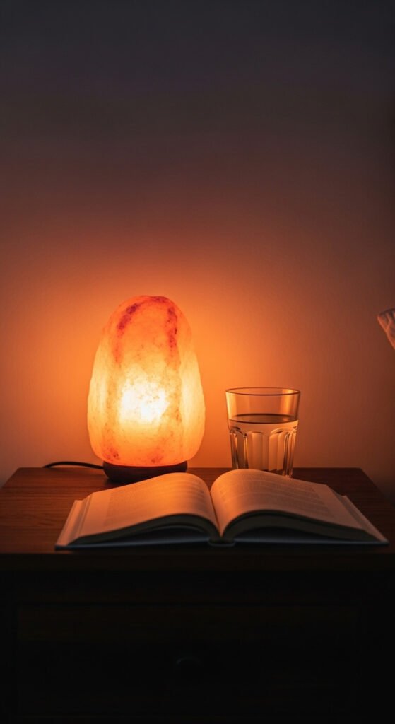 Salt lamps glow with a soft, amber-orange light that is genuinely one of the calmest light sources you can put in a bedroom. They cost between $15 and $40 depending on size. Plug one in beside your bed and use it as your only light source in the hour before sleep. The warm tone signals your brain to wind down. It also works as a very gentle nightlight. Simple. Affordable. And they look great on any nightstand.