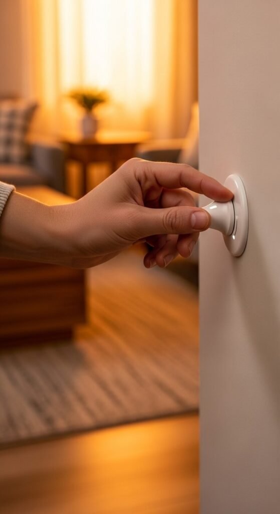 A dimmer switch changes everything. Full brightness for cooking. Half brightness for dinner. Low glow for a movie. One switch, three moods. Most dimmer switches are under $15 and snap into a standard wall socket in about 20 minutes — no electrician required. Just make sure your bulbs are labeled “dimmable.” This is one of the highest-return upgrades you can make to any room. It works in bedrooms, living rooms, and dining spaces equally well.