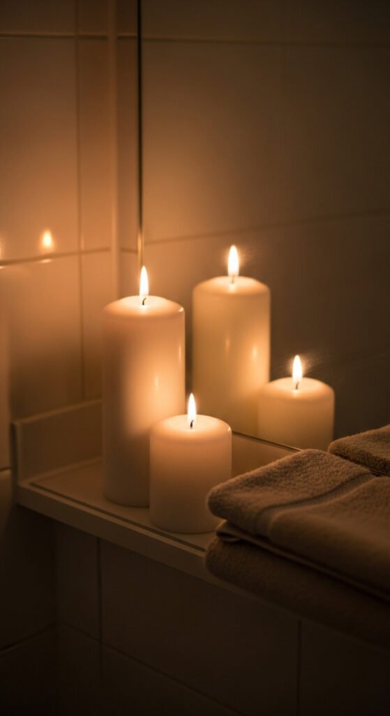 Candles in a bathroom feel indulgent. On a kitchen windowsill, they feel warm and lived-in. On a bedroom dresser, they feel romantic. Candles are the cheapest mood lighting on earth. A pack of unscented white pillar candles from a dollar store works just as well as expensive ones. Group them in odd numbers — three or five looks more natural than two. Use a tray underneath for safety and easy cleanup. The flickering light that candles create simply cannot be replicated by any bulb.