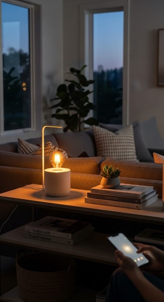 Smart color bulbs (Govee, Philips Hue, or cheaper Wyze options) let you dial in any color temperature from your phone. Set them to 2200K in the evening for maximum coziness. Use a soft rose or amber during dinner. Keep them at 4000K during work hours. A single smart bulb starts around $10–$15. You don’t need to replace every bulb in the house — just one or two in key spots makes a real impact. Pair them with a free app and set schedules.