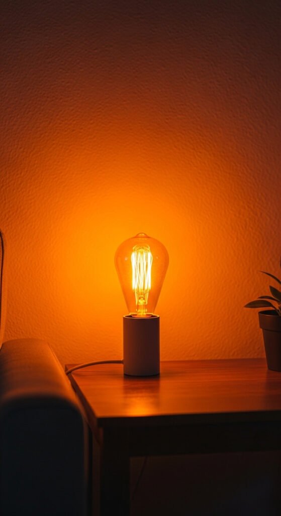 Tinted bulbs — amber, rose, or soft gold — aren’t just novelties. An amber bulb in a table lamp gives you firelight-level warmth without an actual flame. A rose bulb in a bathroom makes skin tones look warm and healthy instead of washed out. These specialty bulbs cost $3–$8 each and screw into any standard socket. Start with one in a key lamp and see if you like the effect before committing to more. They’re easy to swap back if the mood calls for something different.