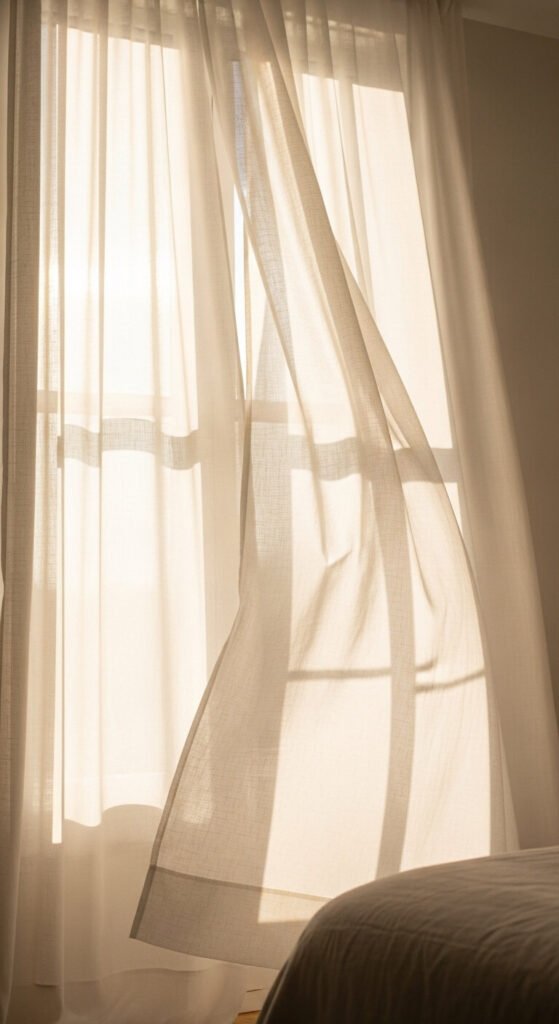 The movement and light diffusion create that beachy, indoor-outdoor feeling. Layer with blinds or shades for privacy when needed. Avoid heavy drapes that block light. The goal is airiness and simplicity.