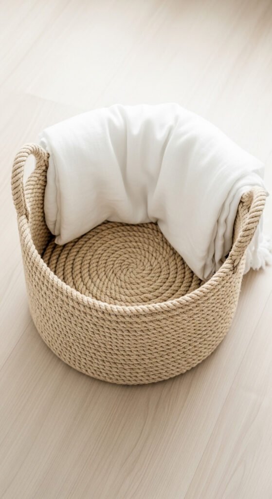 Cotton rope baskets organize clutter while adding texture and warmth.