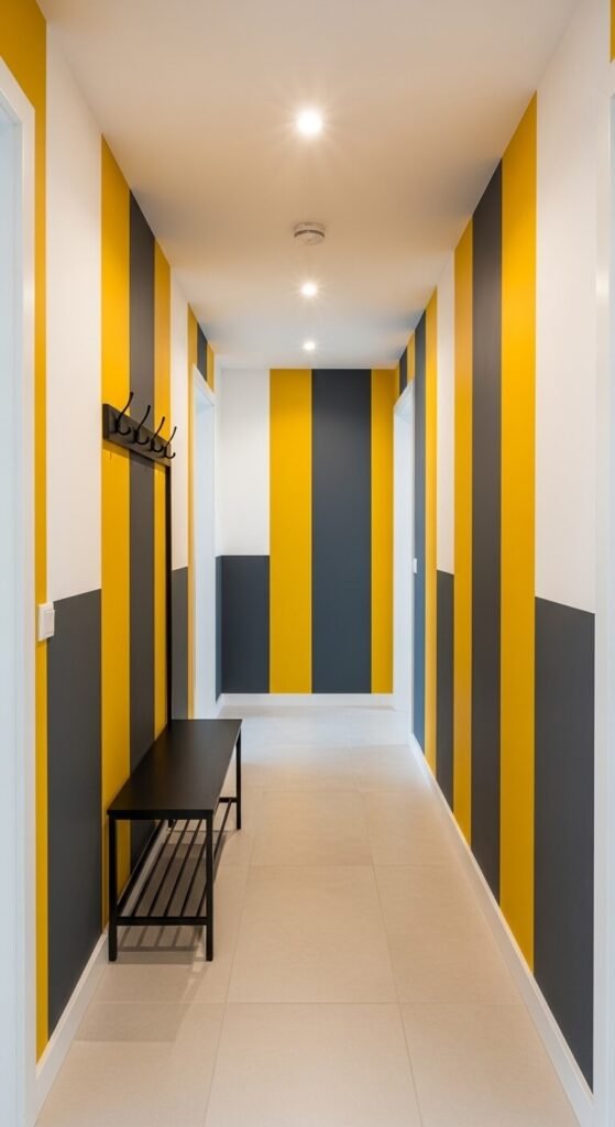 18. Color-Blocked Wallpaper in a Hallway