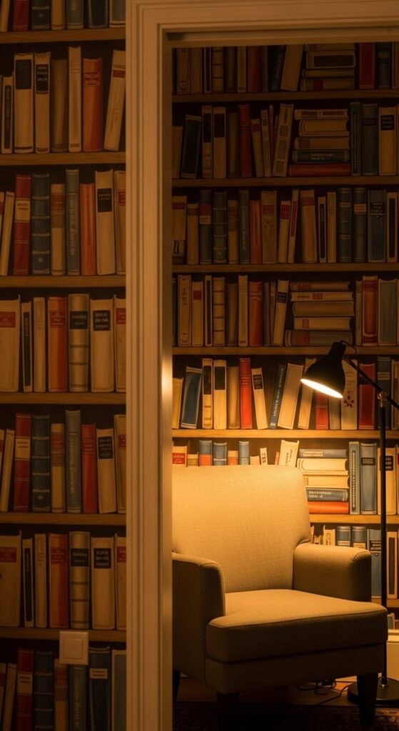 Trompe l’oeil means “deceives the eye” — and bookshelf wallpaper does exactly that. It looks like a real library wall but it’s just clever printing. This is brilliant for small apartments or home offices where actual built-in shelves aren’t possible. It adds personality, humor, and a surprising warmth to a room. Look for designs that use realistic color and shadow so the illusion holds. One wall in a reading corner or office is enough. Pair with a real bookshelf on an adjacent wall for the full effect.
