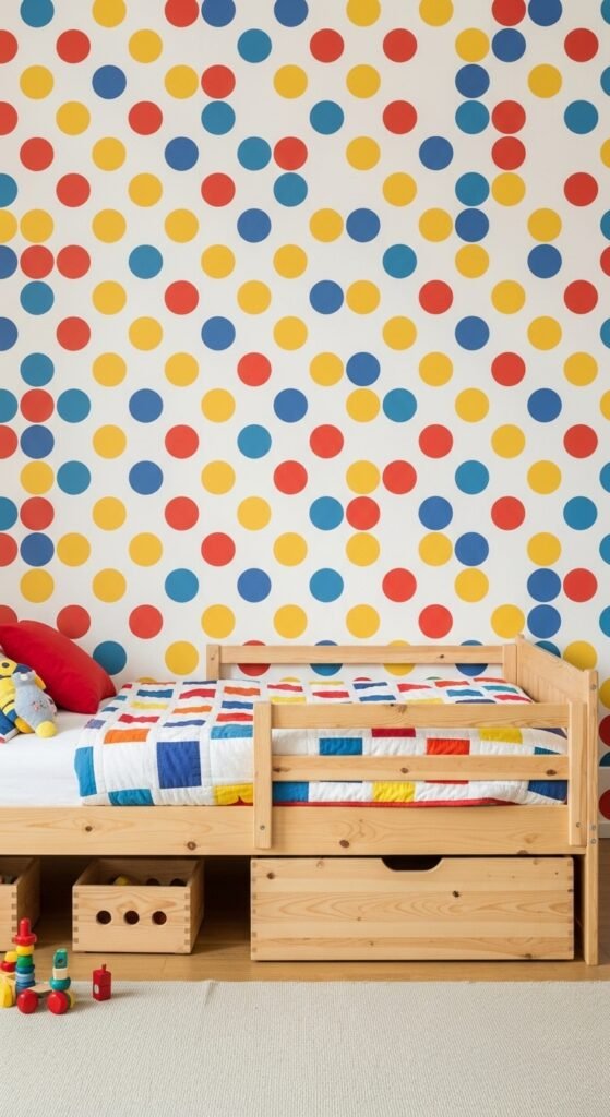 26. Playful Polka Dot Wallpaper in a Kids’ Room