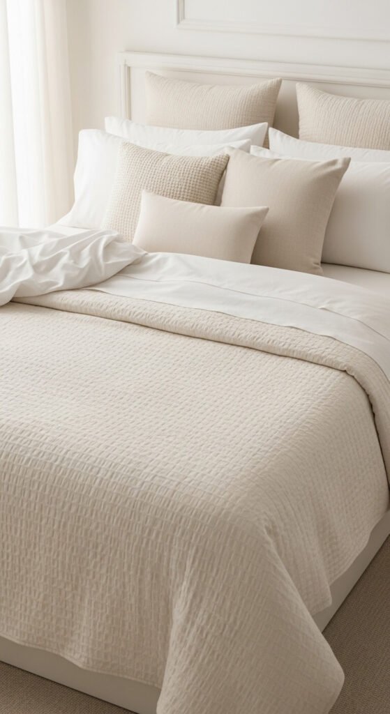 Budget find: IKEA’s OFELIA and PRAKTVÄDD lines, Target’s threshold range, and Amazon Basics all carry affordable textured bedding that looks far pricier than it costs.