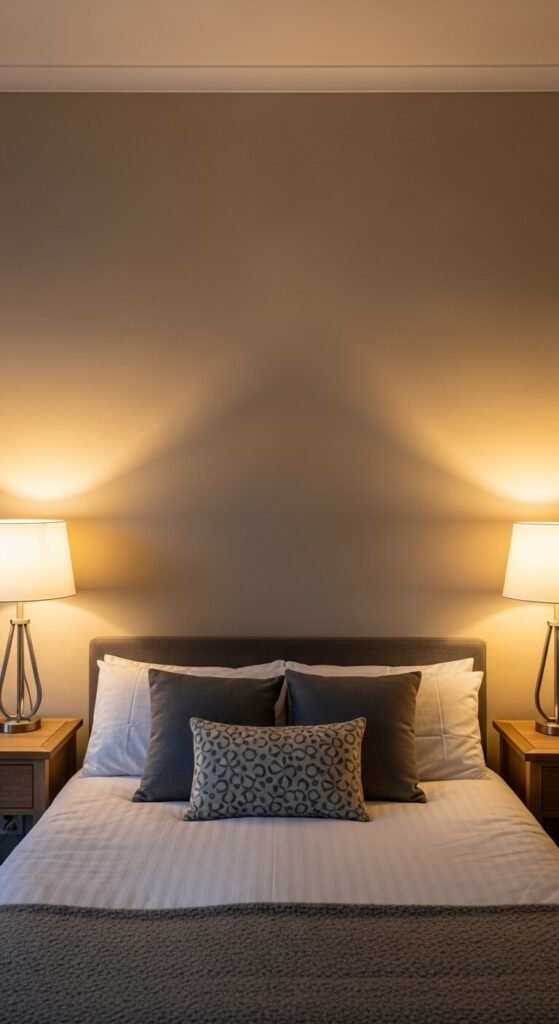 Lighting symmetry is one of the most underrated bed styling tools. Two matching lamps on either side of the bed double the visual warmth and make the space feel spa-like.