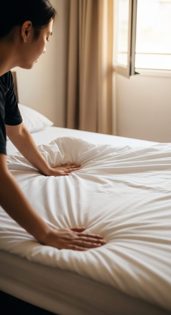 Use deep-pocket fitted sheets so they don’t pop off at the corners. A bed that stays neat all day is half the battle won.