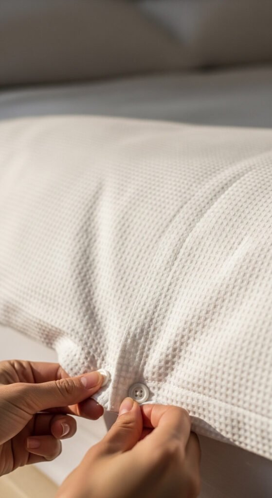 If your cover doesn’t have ties, sew in a few ribbon loops yourself. It’s a ten-minute project that solves a constant annoyance.