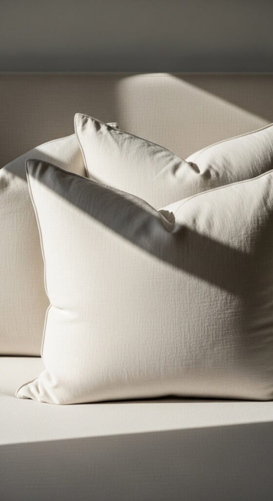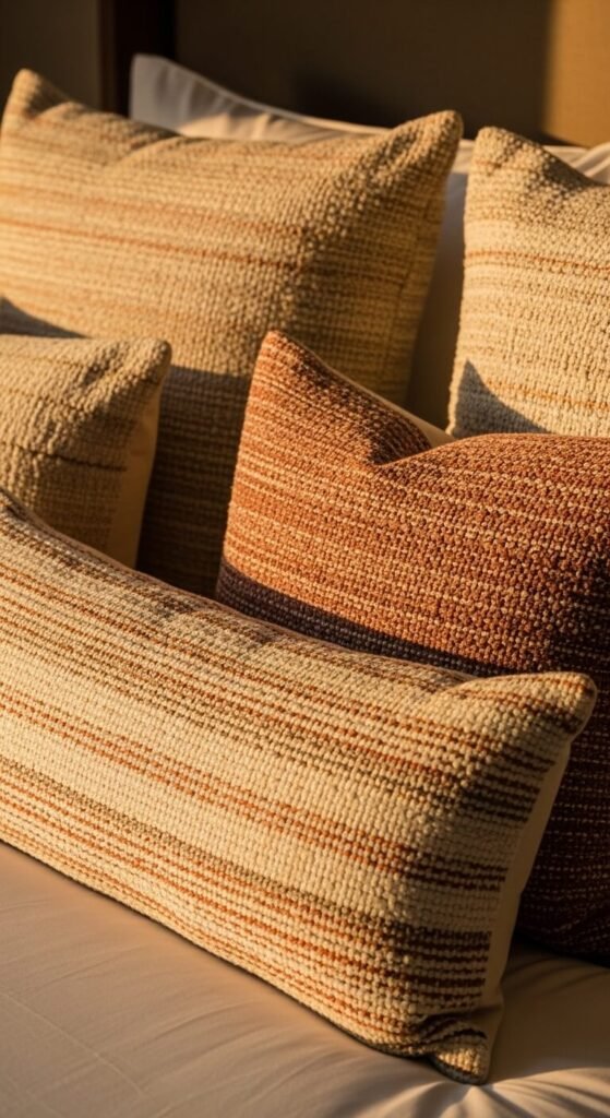 Mix textures — a velvet pillow next to a waffle-knit one adds richness without chaos.