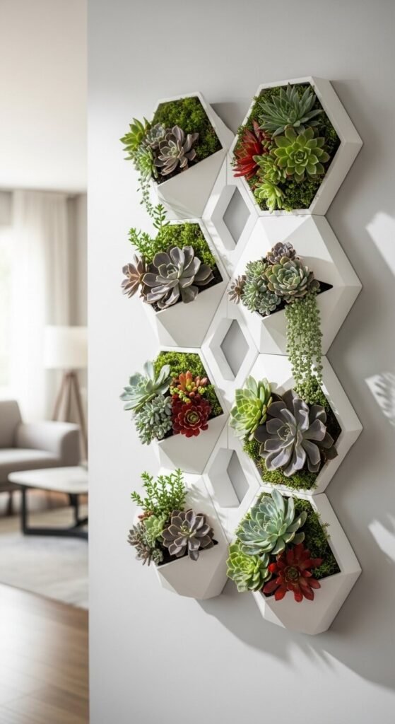 Bring plants into your space without sacrificing surface area by growing up instead of out. Wall-mounted planters, hanging pots, or pocket gardens add life and color while keeping floors clear. DIY a simple version using a wooden pallet and small pots for under $25. Choose low-maintenance plants like pothos, succulents, or herbs that thrive in your light conditions. Water carefully to avoid wall damage. Vertical gardens work beautifully in kitchens, bathrooms, or any room that feels too sterile.