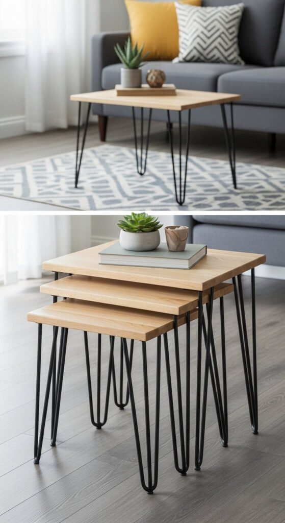 Nesting tables slide together when not in use but expand to provide multiple surfaces when you host guests. Keep the smallest table tucked away and pull out others only when necessary. Use them as plant stands, laptop desks, or drink holders. West Elm and CB2 offer stylish sets, but thrift stores often have vintage versions for $30-60. Choose materials that match your existing furniture. The flexibility means you’re never stuck with too much or too little table space.