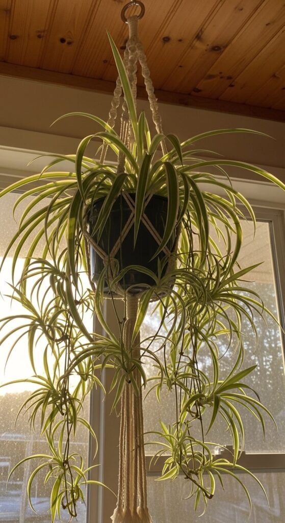Spider plants are among the best air purifiers available — NASA research has backed this up. They also produce baby plants constantly, which you can propagate and give away. Hang a spider plant in a vintage macramé holder near any bright window. The long arching leaves and dangling babies create a beautifully organic, layered look. Spider plants are cheap, widely available, and almost impossible to kill. Water once a week and watch them multiply into a free, never-ending plant supply.
