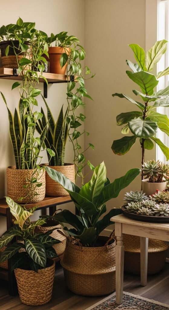 A single large plant can transform a room. The fiddle leaf fig is that plant. It’s bold, sculptural, and instantly recognizable. Place it in a bright corner near an east or west-facing window. Give it a wicker or ceramic pot that complements your furniture. Water it once a week and wipe the leaves with a damp cloth monthly. It’s dramatic without being difficult. One plant, maximum impact — that’s the whole strategy here.