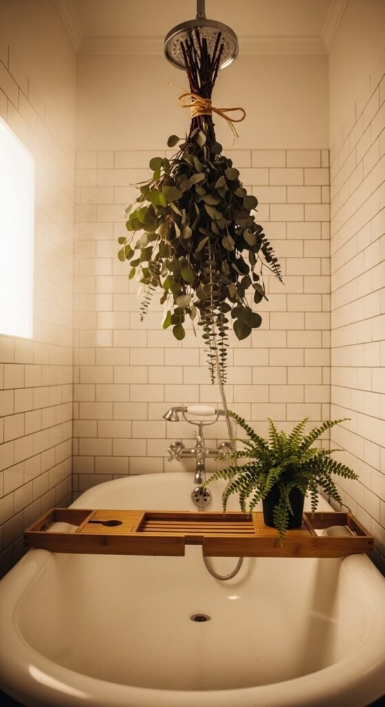 Bathrooms are secretly perfect for plants. The steam from showers mimics a tropical environment. Ferns, orchids, and peace lilies love it in there. Hang a bundle of eucalyptus from your showerhead — it smells incredible and lasts weeks. A small shelf above the toilet is prime real estate for a trailing string of pearls. These setups cost almost nothing and transform a basic bathroom into a spa-like retreat.