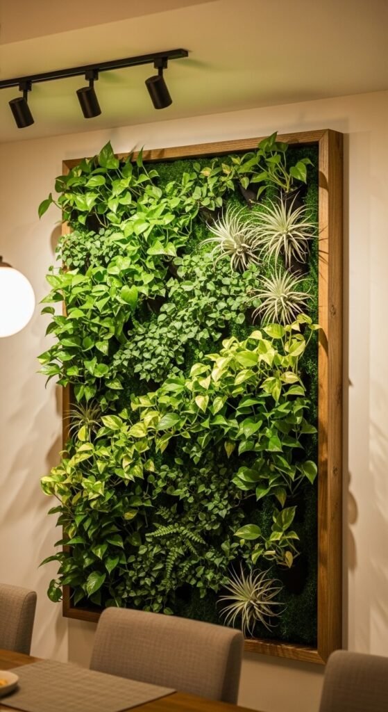 A living wall sounds expensive but doesn’t have to be. Pocket planters from Amazon or IKEA mount directly to a wall and hold small plants. Fill them with pothos, ferns, or air plants. Start with a 2×4 grid and expand over time. Use a piece of pegboard as a DIY base and hang small pots with S-hooks. This works especially well on a dining room accent wall. It’s a conversation piece that also cleans your air — two jobs, one wall.