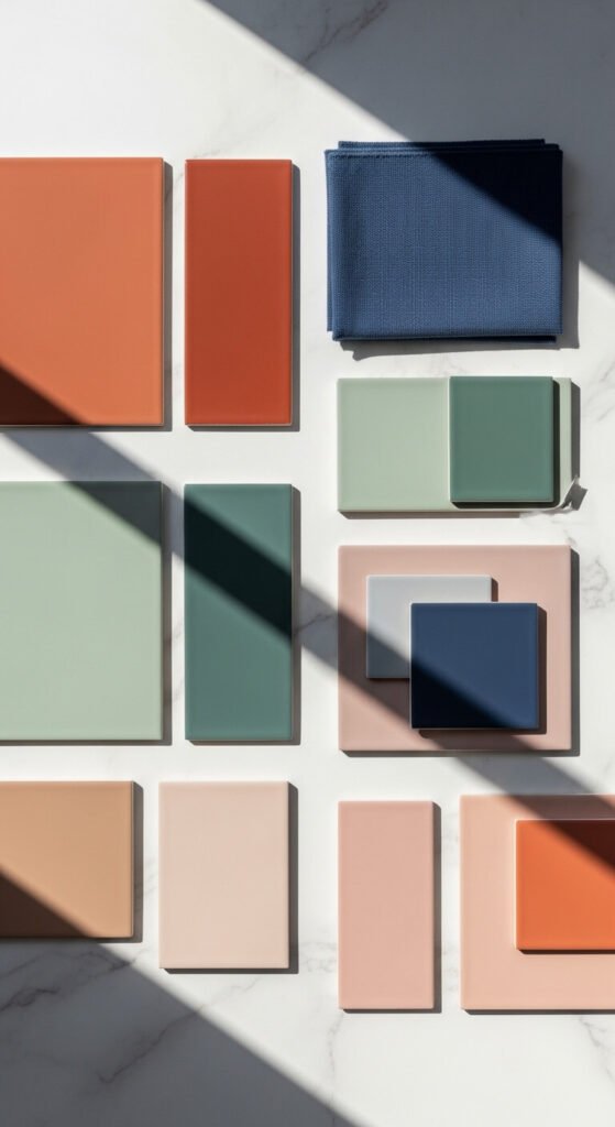 Terracotta and cream is earthy, warm, and grounding. This palette shows up everywhere right now — and for good reason. It feels like a sun-baked Mediterranean home. You can bring it into your space for almost nothing. Paint one wall in a terracotta tone. Use cream cotton bedding. Add a rust-colored throw pillow. Even a single terracotta planter on a cream shelf does the job. It photographs beautifully too, which is a bonus.