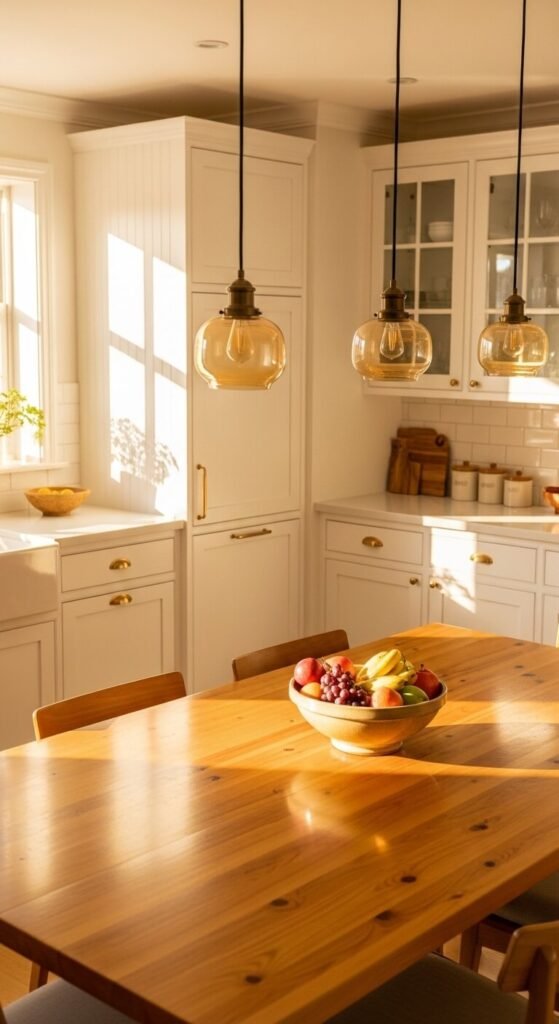 Warm honey and white glows. The honey tones — think golden wood, amber glass, straw-colored textiles — light up a white room. This palette is essentially what’s sold in every Scandinavian home store, and for good reason. You likely already have the white elements. Add honey tones through a wooden cutting board, an amber glass vase, or a straw basket. It’s an incredibly affordable palette to build because natural wood and rattan items are always available secondhand.