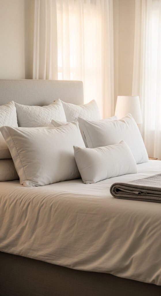 Hotels typically use more pillows than you’d expect — that generous, layered look is intentional. Don’t be shy about adding a few extras.