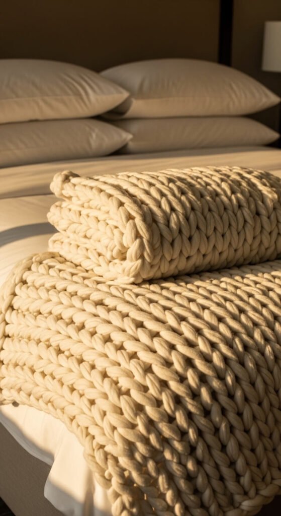 A neatly folded throw blanket draped across the foot of the bed is the cherry on top. Fold it in thirds lengthwise, then lay it horizontally across the bottom third of the bed. It adds warmth, texture, and that final “someone just styled this” effect.