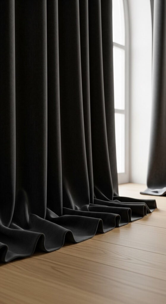 - Pooling on the floor (3–6 extra inches): Romantic, relaxed, and editorial. Think bedroom retreats and formal dining rooms.