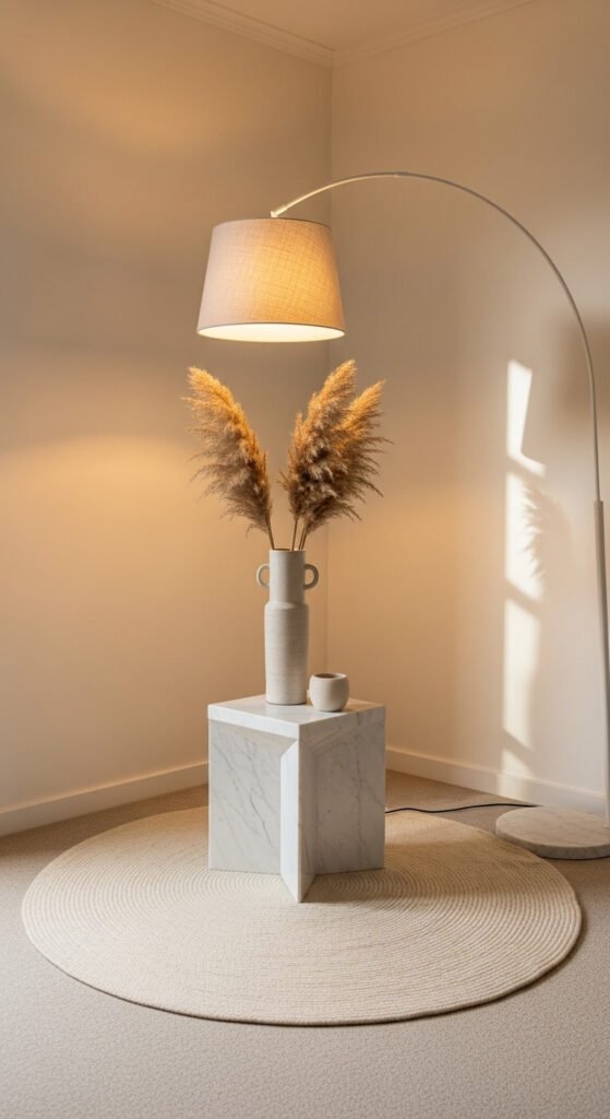 - Floor lamps — the go-to for corners; choose warm bulb tones (2700K–3000K)