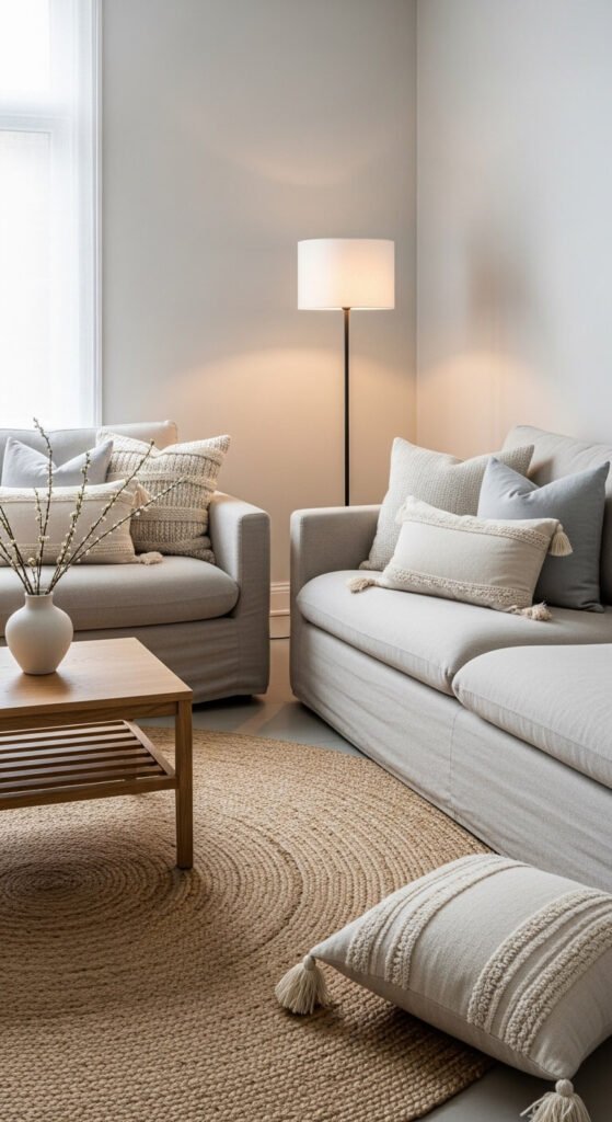 The foundation of every high-end room is a cohesive, neutral palette. Think warm whites, soft beiges, earthy taupes, and muted greiges. These tones are timeless, photograph beautifully, and make a space feel instantly more curated.
