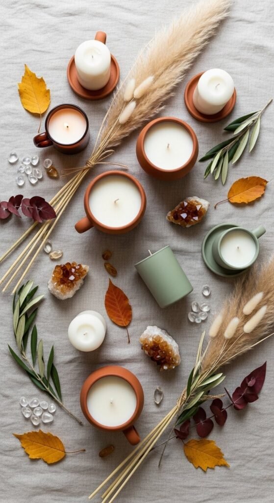 - Bathroom: Small votive candles or tea lights around the tub create a spa-like atmosphere. Eucalyptus or fresh linen scents feel clean and refreshing.