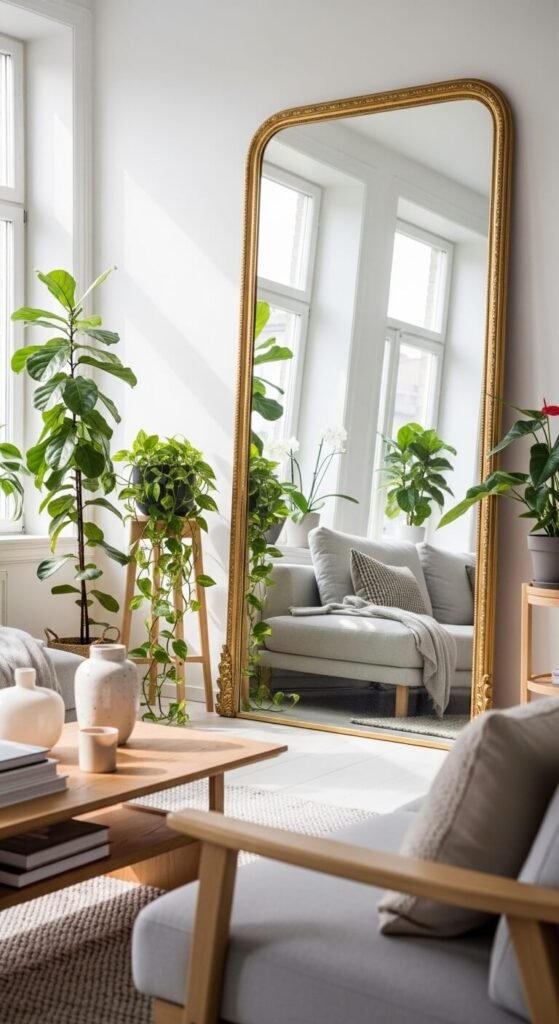 Don’t be afraid to go floor-to-ceiling. A full-length leaner mirror is one of the easiest ways to make a bedroom or living room feel twice its actual size.
