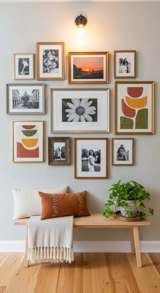 - Keep spacing consistent: 2 to 3 inches between frames looks clean and intentional.