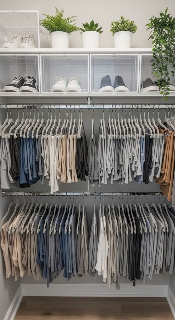 - Add a second hanging rod in your closet to double clothing storage instantly