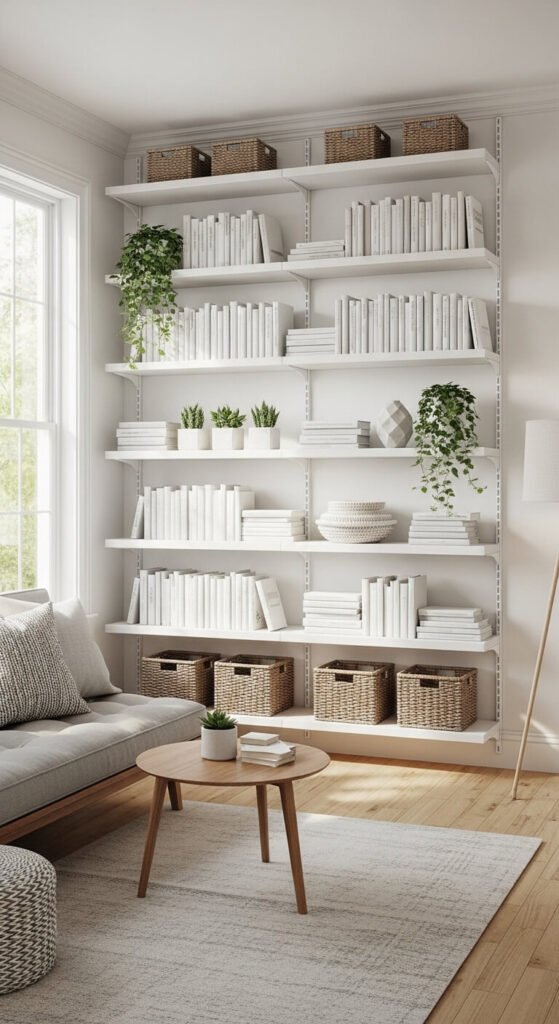 The single most impactful vertical storage move you can make is installing floor-to-ceiling shelves. They draw the eye upward, making ceilings feel taller, and they multiply your storage capacity without stealing an inch of floor space.