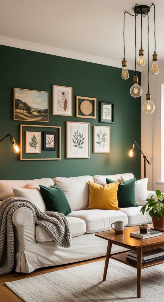- Place furniture that contrasts in texture or tone — a natural wood piece against a moody wall is chef’s kiss.