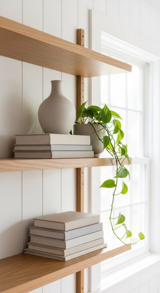 Styling shelves without clutter isn’t about buying more beautiful things — it’s about arranging what you have with intention. The Rule of Three gives you a simple, foolproof framework: group in trios, vary your heights, embrace negative space, and let your color story do the heavy lifting.